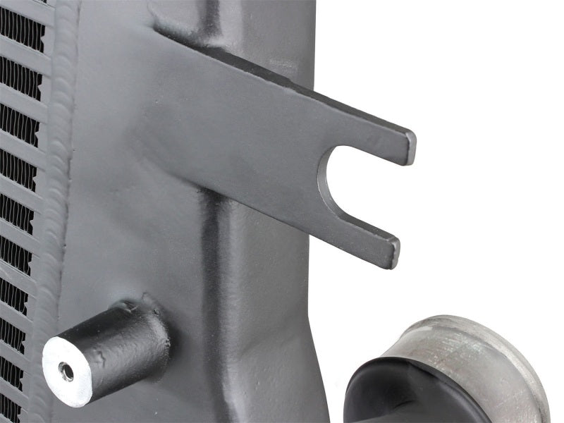 Bladerunner Intercoolers represent the next generation of intercoolers. The Bladerunner intercoolers utilize a 3 in. bar and plate design that out performs OE style tube and fin core designs. The end tanks are constructed out of 3/16 in. TIG welded aluminum plate tanks that incorporate three multi-directional vanes that efficiently direct air flow through the entire core for maximum cooling. The Bladerunner intercooler also comes with 4 1/8 in. pre-tapped ports for easy gauge installation as well as other auxiliary input options. Tested at 200psi which is perfect for the high boost applications. In recent testing the Bladerunner intercooler produced a 200 deg. temperature drop and a 100 deg. EGT drop as well as increasing air flow by 30 percent. Dont waste your time and money on modified factory intercooler. Invest in the aFe Bladerunner intercooler. the most sophisticated intercooler design on the planet.