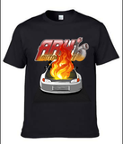 100 percent cotton black tee shirt. This shirt is inspired from a fire we had happen due to improper fuel system setup. We are doing a limited number of these! get them while you can. Hang dry recommended.