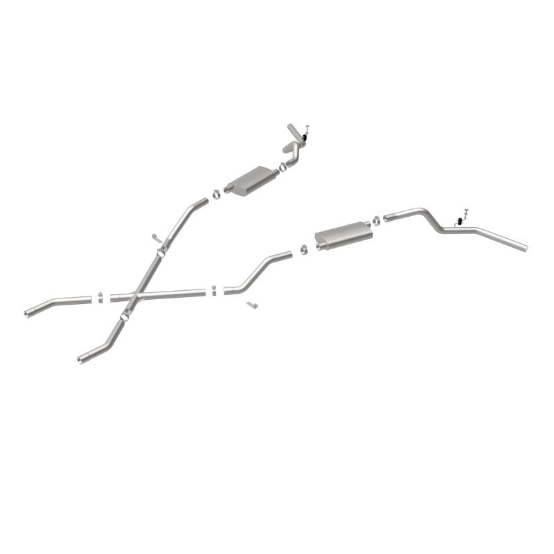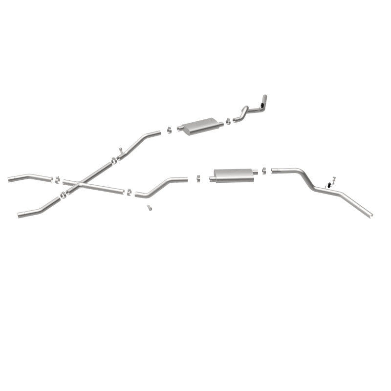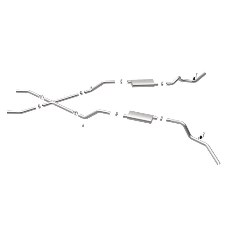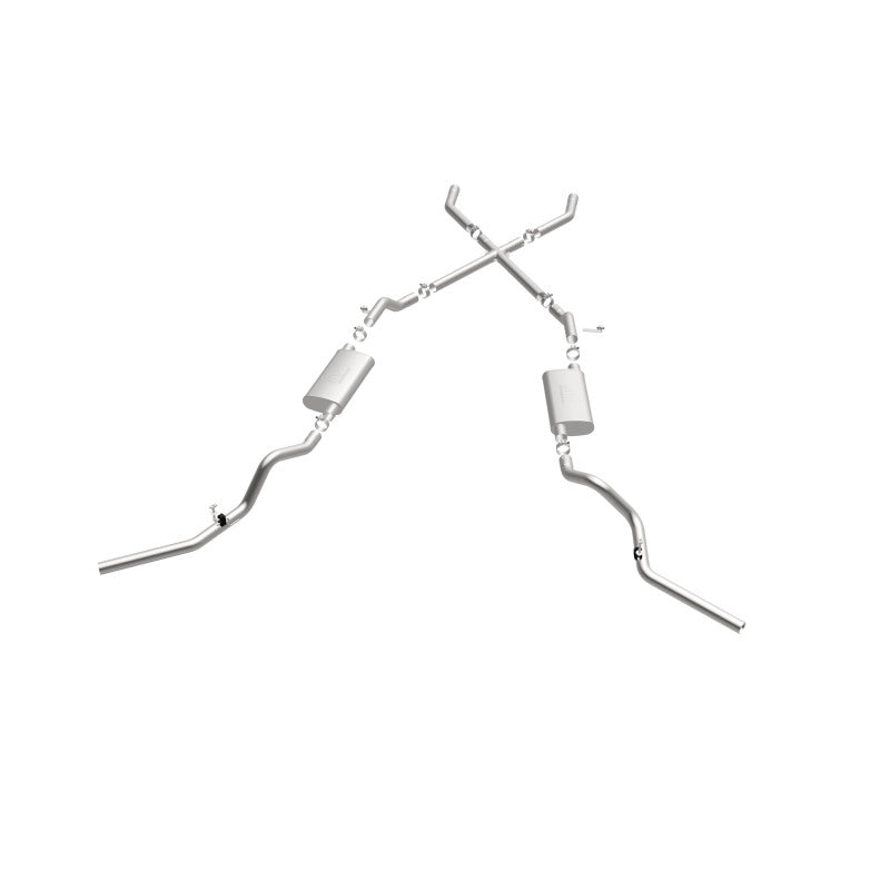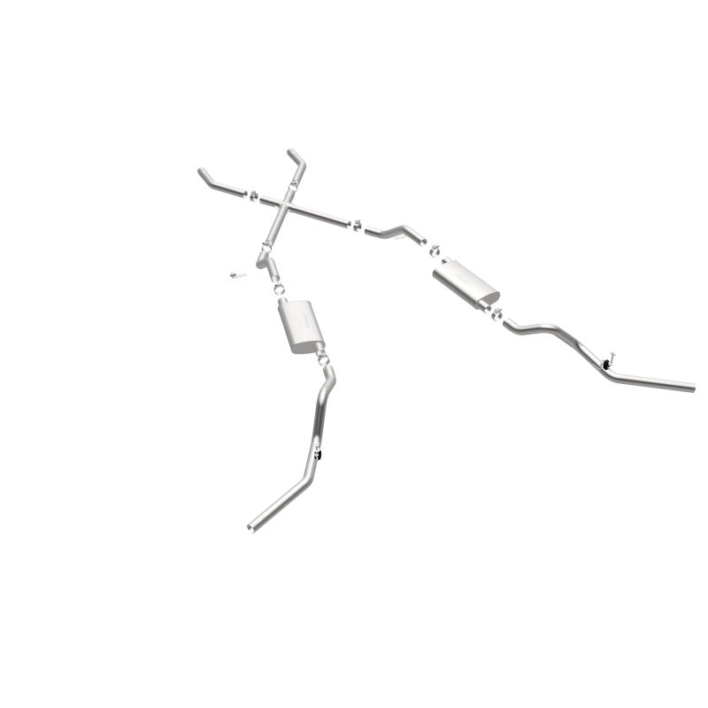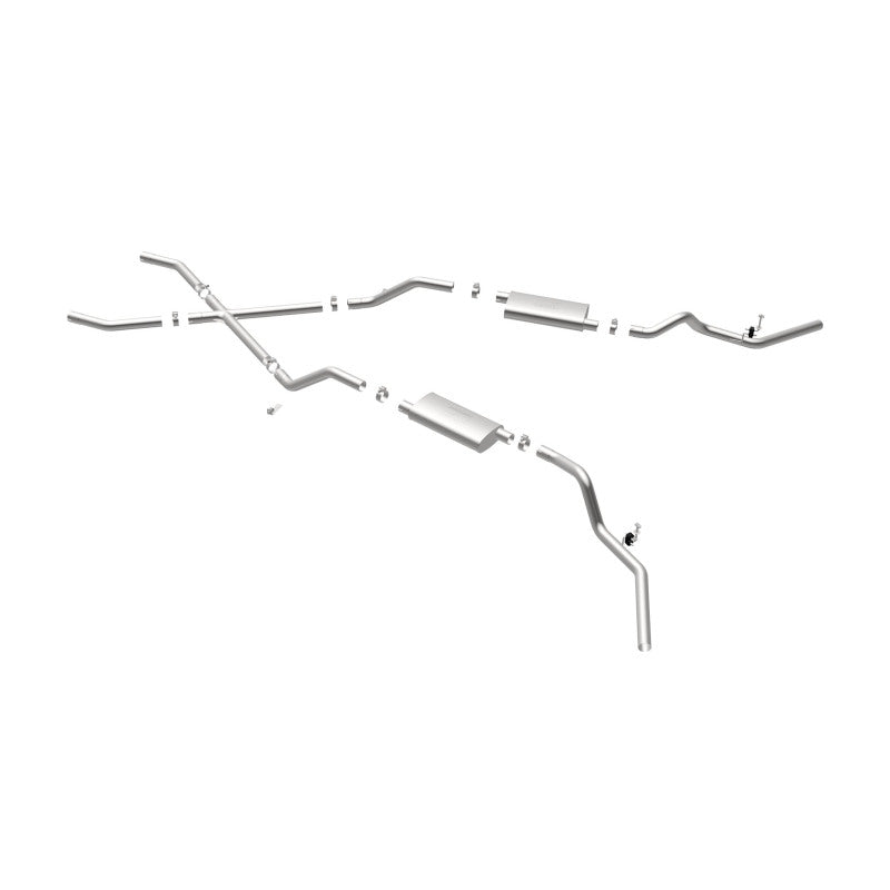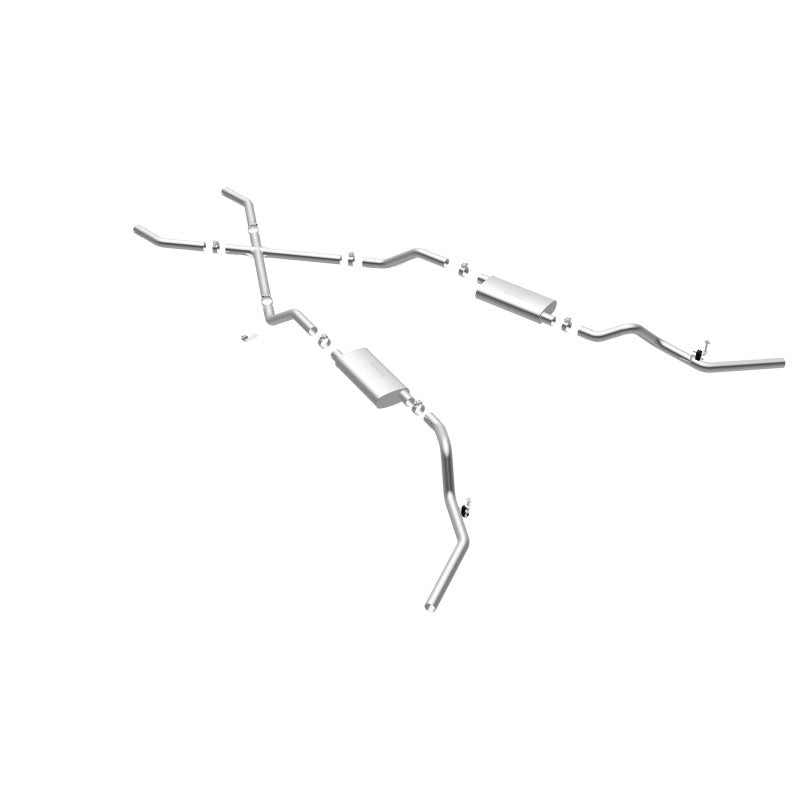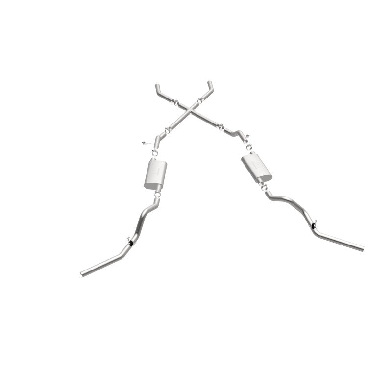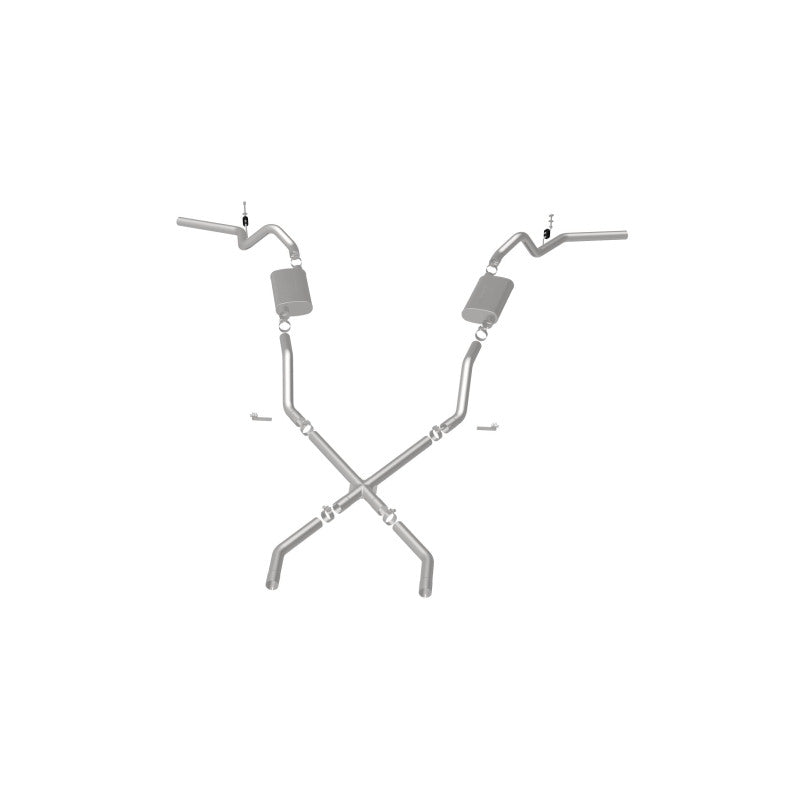 The MagnaFlow Chevrolet Street Series 16643 brings enhanced engine sound and dyno-proven performance to your 3.8L, 4.1L, 4.3L, 4.6L, 4.8L, 5.0L, 5.3L, 5.7L, 6.5L, 6.6L 1960-1972 Chevrolet with a healthy helping of our deep, resonant signature exhaust note at Agressive exterior and Moderate interior sound levels. Thanks to its durable, corrosion resistant stainless steel design, this Chevrolet exhaust system will handle whatever tarmac you decide to leave your mark on. This performance exhaust kit features a crossmember-back layout designed to replace your Chevrolet’s exhaust system from the crossmember on back. With its fast-flowing, mandrel bent 2.5in. main piping and 2 Straight-Through mufflers ending in a Dual Split Rear Behind Rear Tires exit that you can enhance with tips of your choosing, your muscle car will be sounding as awesome as it looks. Extensive 3D scanning during development has resulted in a direct-fit design that you can easily install yourself. 16643 is produced using CNC precision robotic manufacturing techniques and is backed by MagnaFlow’s limited lifetime construction warranty.