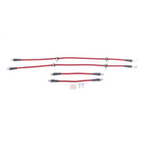 PowerStop's stainless steel brake line kits as a performance replacement for your OE rubber brake hoses. Our red stainless-steel brake line kits are DOT FMVSS106 certified. They are made with premium PTFE material with permanently crimped-on zinc plated steel fittings. They are encased in a stainless-steel braid and red PVC outer cover to provide superior protection against abrasion and corrosion. Our hoses have passed numerous vigorous tests such as expansion and burst strength, whip resistance, water absorption, and tensile strength just to name a few.